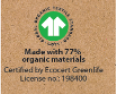77% Organic cotton, 20% recycled polyester, 3% Elastane